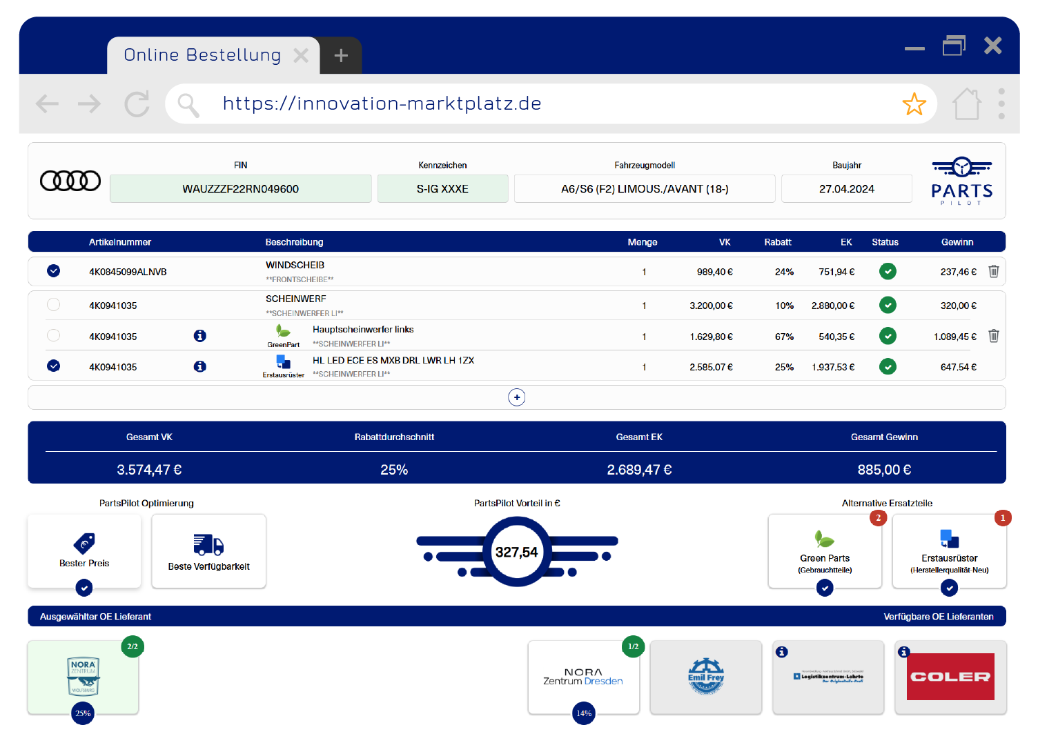 Intelligente Ersatzteilbestellung mit Preis und Verfügbarkeitsanzeige