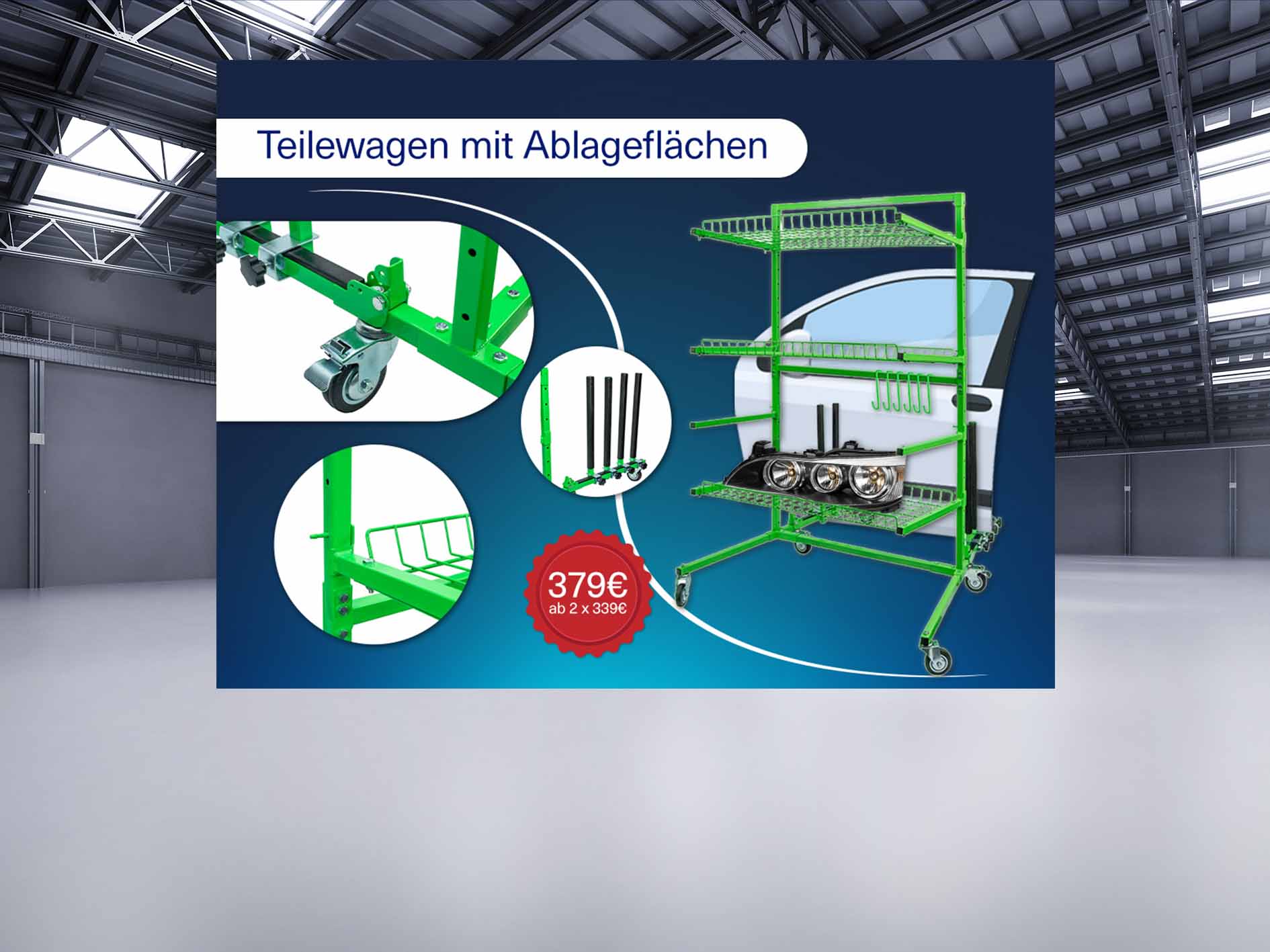 Im Bereich Werkstattausrüstung finden sie unteranderem Hebebühnen, Werkstattwagen, Werkbänke. Alles Geräte, die unverzichtbar für die Instandhaltung und Reparatur von Fahrzeugen sind.